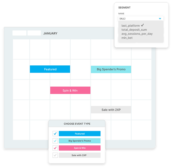 Easily schedule in-game events to boost your revenue. Segment players by any data point you’d like, to trigger promotions and challenges.